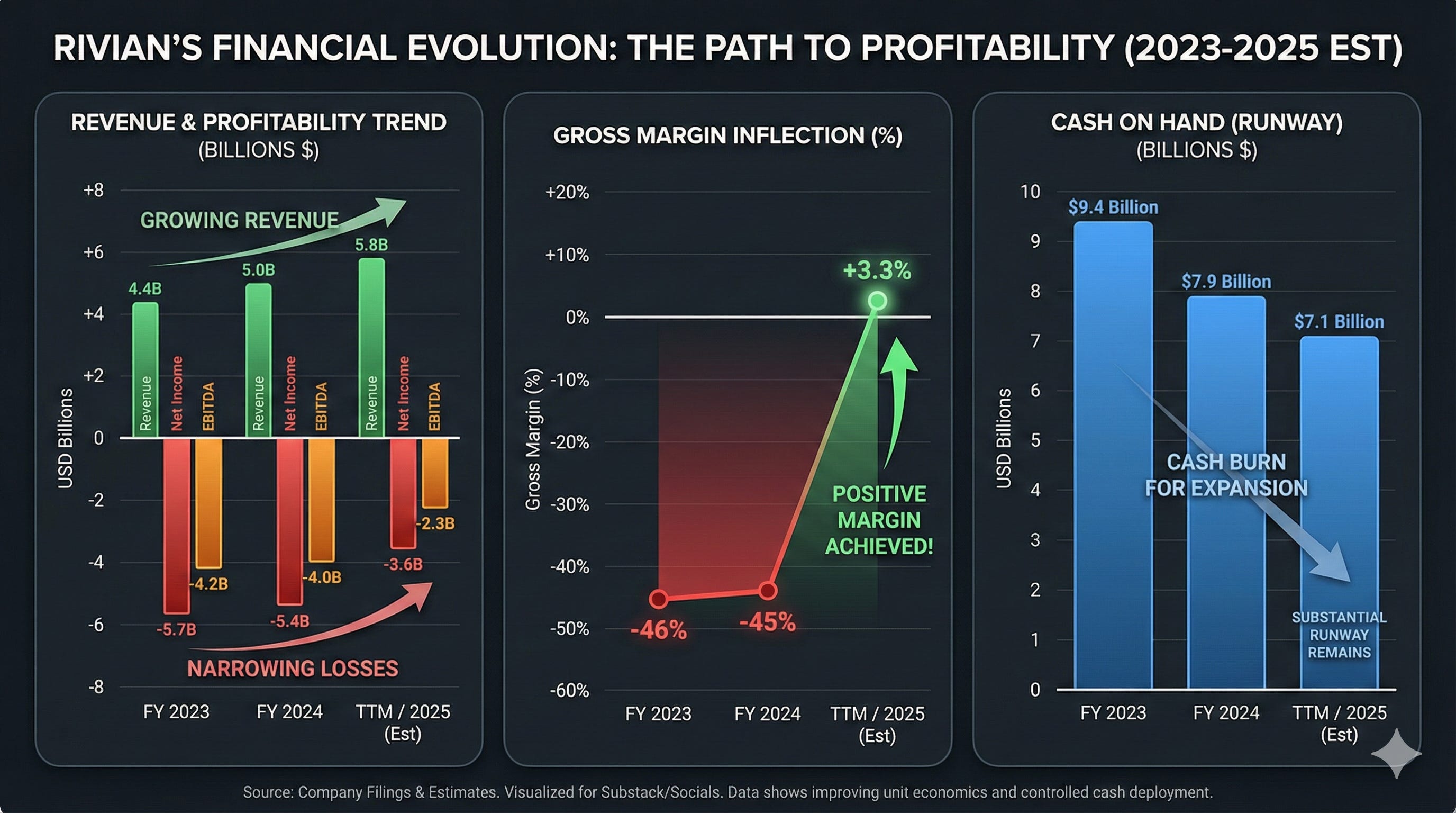 Rivian is sitting on a pile of cash - about $7.1 billion. In any other industry, that’s a war chest. In the auto industry, it’s a packed lunch. They are currently losing money on every truck, though they’ve finally stopped selling dollar bills for ninety cents. They posted a positive gross margin recently, a meager few percent, which in this business counts as a Herculean triumph.