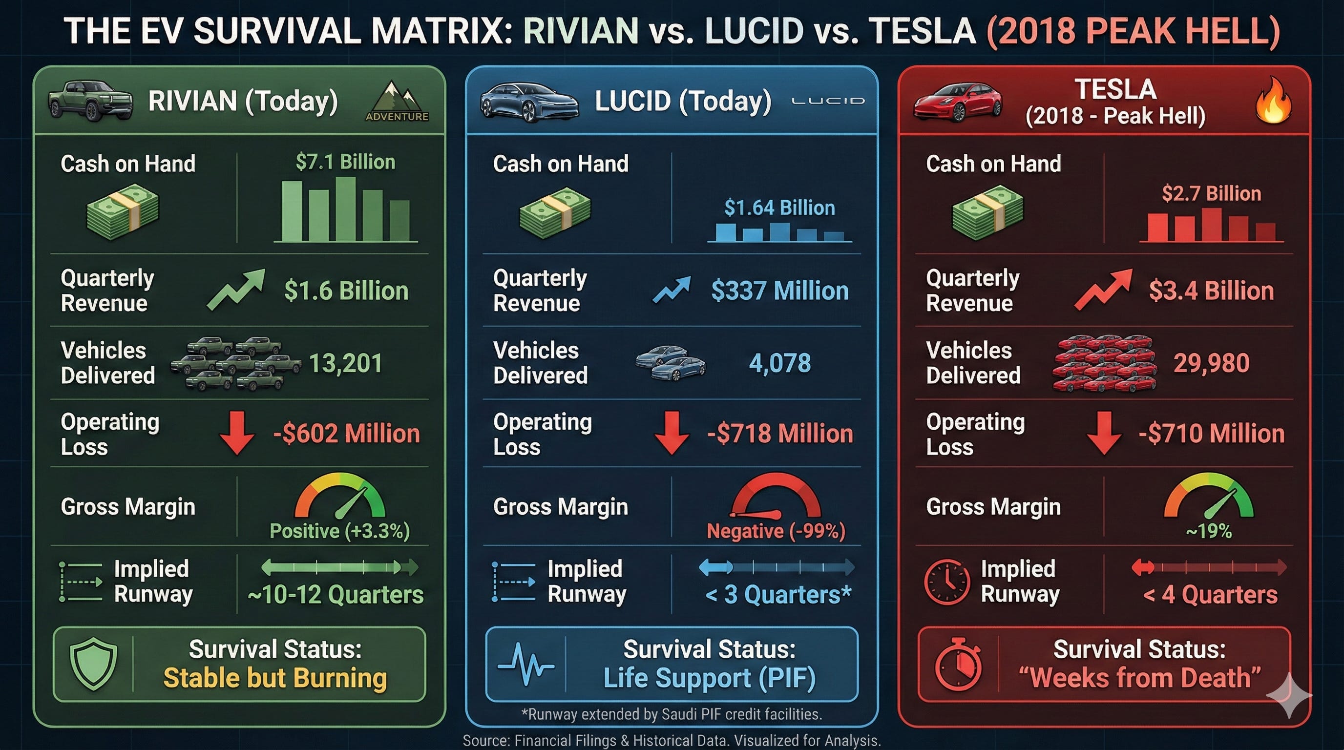 The “Survival” Matrix: Rivian vs. Lucid vs. Early Tesla