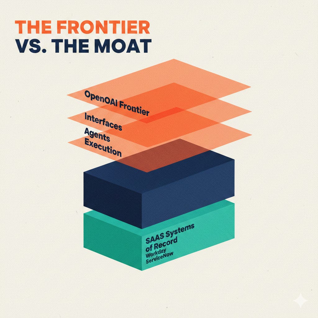 OpenAI’s Frontier is a brilliant architectural diagram. It may even be a brilliant product. But there is a line drawn across the middle of that diagram, and everything interesting about the investment thesis depends on which side of it you’re standing on.